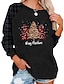 Vánoce Dámské Tričko Grafika Vánoční stromek Vinobraní stylové Klasické Dlouhý rukáv Do V Běžné topy Denní Slátanina Tisk Světlá růžová Rubínově červená Vodní modrá Trávová zelená Podzim Zima
