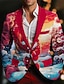 Pánské Blejzr Kabát Vánoce Venkovní Ležérní Běžné Denní Podzim zima 100% polyester Vánoční stromek Sněhová vločka 3D tisk Knoflíky Zahřívací Pohodlné Jednořadé Blejzr Černá Rubínově červená