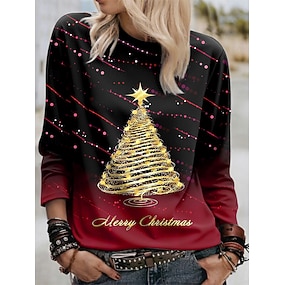 Vánoce Dámské Tričko Grafika Vánoční stromek Vinobraní Módní stylové Dlouhý rukáv Tričkový Běžné topy Denní Víkend Tisk Rubínově červená Vodní modrá Fialová Oranžová Trávová zelená Podzim Zima