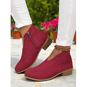 Dámské červené kotníkové boty z umělého semiše s bočním zipem – ležérní a elegantní styl na zahradní párty, procházky v parku i každodenní nošení