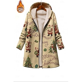 Dámské vánoční mikiny na zip s potiskem Santa Clause, teplé, aktivní, vintage, s dlouhým rukávem, s kapucí, do práce, na každodenní nošení, potisk, khaki, jaro, podzim, zima