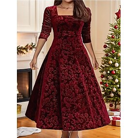 Dámské sametové midi šaty těsné šaty šaty ve tvaru A šaty Fit and Flare párty narozeniny koktejlová párty svatební host narozeniny jednobarevné dlouhé rukávy výstřih posádky černé červené modré