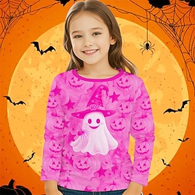 předvečer Všech svatých Dívčí 3D Dýně Duch Tričko Košilky Dlouhý rukáv Jaro Podzim Módní Základní Děti 4-12 let Tričkový Venkovní Ležérní Denní Běžný