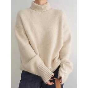 Dámské Pulovrový svetr stylové Na běžné nošení Měkké Pevná barva Tlustý Rolák Velkoformátové Dlouhý rukáv Běžné topy Plést Denní Jdeme ven Víkend Černá Bílá Podzim Zima