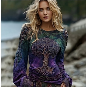 Dámské Tričko Grafika Vinobraní Módní stylové Dlouhý rukáv Tričkový Kulatý Běžné topy Denní Víkend Tisk Vodní modrá Rubínově červená Fialová Trávová zelená Léto Jaro Podzim