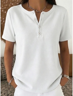 Dámské Tričko Tričko Top Knoflíky na hrudi Bez vzoru Módní stylové Klasické Krátký rukáv Henley Běžné topy Denní Jdeme ven Víkend Vodní modrá Černá Bílá Rubínově červená Námořnická modř Léto Jaro