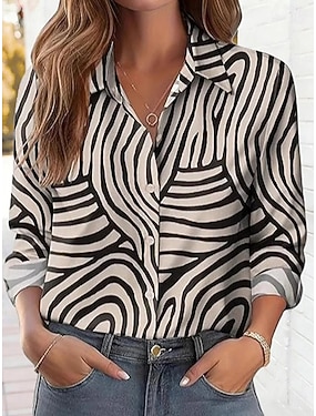Dámské Košile Grafika Geometrický Vinobraní stylové Moderní Dlouhý rukáv Košilový límec Běžné topy Ležérní Denní Vodní modrá Léto Jaro