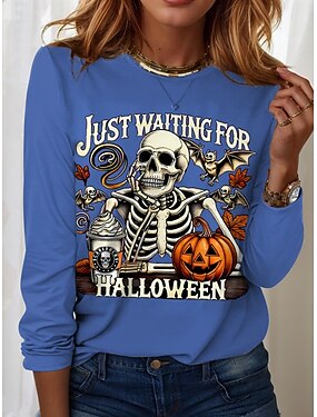 Dámské tričko s grafikou dýně a lebky vintage móda stylový dlouhý rukáv kulatý výstřih běžné topy každodenní víkendový potisk černá bílá růžová modrá fialová jaro podzim zima
