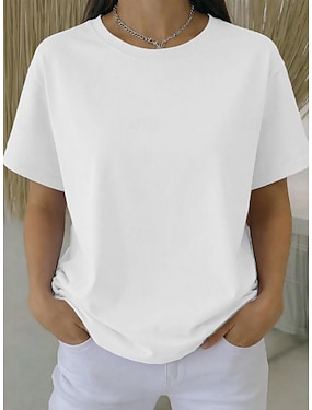 Dámské Tričko Tričko Top Bez vzoru Módní stylové Klasické Krátký rukáv Tričkový Běžné topy Denní Jdeme ven Víkend Vodní modrá Bílá Světlá růžová Fuchsiová Trávová zelená Léto Jaro