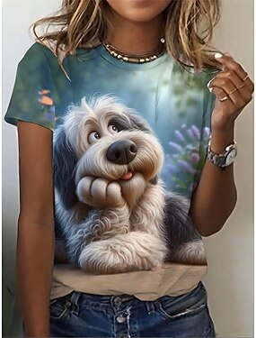 Dámské Tričko Tisk Grafika Zvíře Pes Vinobraní stylové Klasické Krátký rukáv Tričkový Kulatý Běžné topy Denní Víkend Vodní modrá Černá Bílá Rubínově červená Fialová Léto Jaro