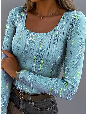 Dámské Tričko Tisk Tónované Grafika stylové Klasické Moderní Dlouhý rukáv Tričkový Běžné topy Denní Víkend Oblečení na dovolenou Vodní modrá Fialová Léto Jaro Podzim