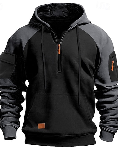 Pánské Kapuce Mikina se zipem na čtvrtletí Taktická mikina s kapucí Černá Námořnická modř Khaki Tmavě šedá Šedá Kapuce Barevné bloky Taktická Sporty a outdoor Denní Šik ven Chladný Na běžné nošení