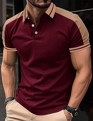Pánské Tlačítko nahoru Polos Golfová košile Ležérní Dovolená Klopa Krátký rukáv Módní Základní Barevné bloky Slátanina Výšivka Léto Běžný Fialová Černá Námořnická modř Trávová zelená Světle modrá Šedá