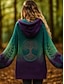 vikingský boho dámský kardigan vintage denní etnický styl geometrický barevný gradient žebrovaný s kapucí kapsy knoflíky potisk dlouhý rukáv dlouhé tílko pletené outdoor víkend žlutá modrá podzim zima