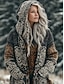 Dámské Vánoční svetr Fair Isle svetr Svetr Kardigan Vinobraní Módní Šik ven Geometrický Kapuce Knoflíky Pletený Dlouhý rukáv Běžné topy Plést Venkovní Denní Víkend Béžová Kávová Podzim Zima