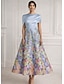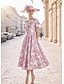 A-Linie K lýtkům Formální šaty Květinové šaty Koktejl Šaty Elegantní Vinobraní Květinový Krátký rukáv Královna Anna Zahradní slavnost Svatební Kapsy Žakár s Květinový potisk Kapsy