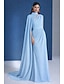 A-Linie Na zem Plesové šaty s pláštěnkou Večerní šaty Plesové Elegantní Dlouhý rukáv Královna Anna Svatební Formální Šifón satén s Sklady