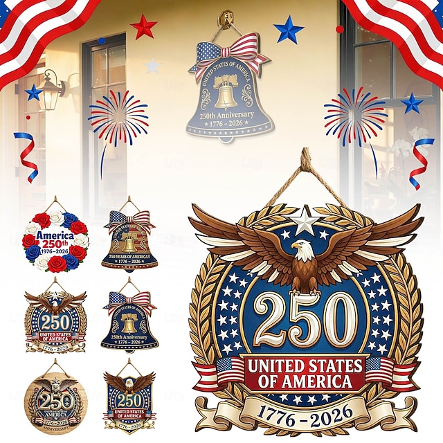Dřevěná cedule k 250. výročí Spojených států, vlastenecká dekorace na zavěšení dveří ke Dni nezávislosti, nástěnná plaketa s americkou vlajkou na farmě, dekorace na verandu domu ke Dni nezávislosti 4.#10306973