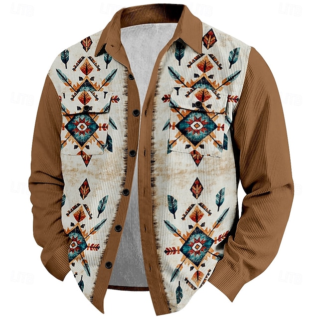 Pánské Kovbojské Kordurová košile Košile bunda Overshirt Dlouhý rukáv Vinobraní vesternový styl Venkovní Na den Ležérní Podzim zima Přehnutý Košile s límečkem 3D tisk Knoflíky 2 kapsy 1ks Černá Vodn#10829910