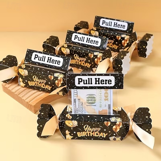 Balení 4 černo-zlatých vytahovacích dárkových krabiček k narozeninám, dárkové balení s překvapením v podobě hotovosti, ideální pro bytové dekorace, oslavy narozenin dospělých, výročí a dárky k#10900771