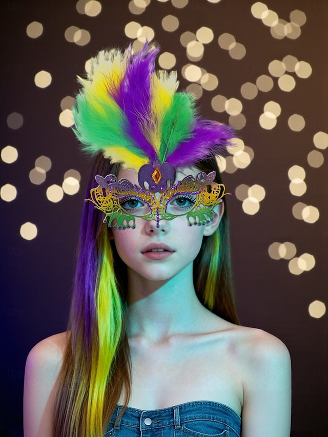 Dámská pírková benátská maškarní maska - Barevný laserem vyřezávaný kostýmový doplněk pro karnevalové párty cosplay a oslavy#11504725