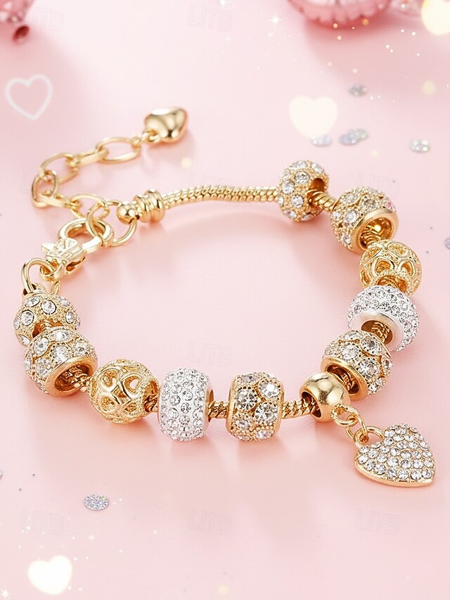 Dámský náramek s přívěskem ve tvaru srdce z lehké slitiny s třpytivými kubickými zirkony, ideální jako dárek k Valentýnu nebo pro každodenní nošení.#11631009