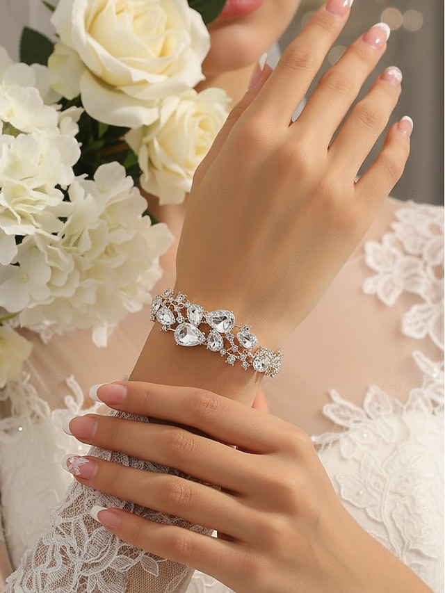 Dámský náramek s křišťálovými kamínky - třpytivý stříbrný nastavitelný náramek na večírky, svatby a večerní příležitosti na konci roku#12219470