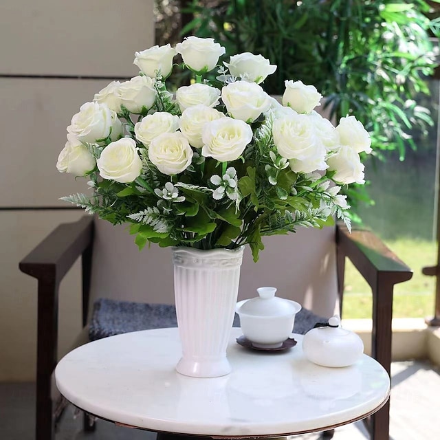 umělé růže, aranžmá z hedvábných růží do obývacího pokoje, květinová dekorace na stůl pod televizní stolek, umělé květiny do středu pokoje#12392619