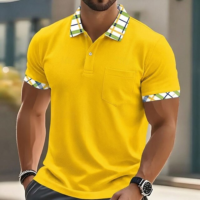 Pánské Golfová košile Polokošile Pique Ležérní Obchod Klasický Krátký rukáv Módní Základní Pevná barva Pléd Knoflíky Léto Jaro Jaro & podzim Běžný Bílá Žlutá Námořnická modř Trávová zelená Golfov #12634200