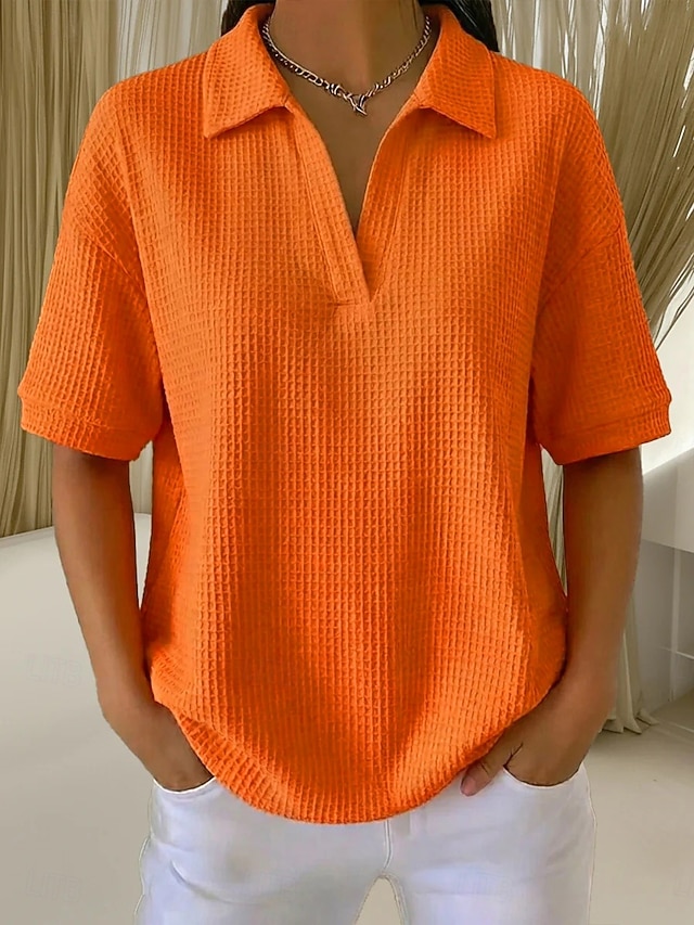 Dámské Tričko Polokošile Trička Vaflově pletené topy Bez vzoru Módní stylové Základní Krátký rukáv Košilový límec Běžné topy Denní Jdeme ven Víkend Vodní modrá Černá Bílá Oranžová Trávová zelená Léto#12722364