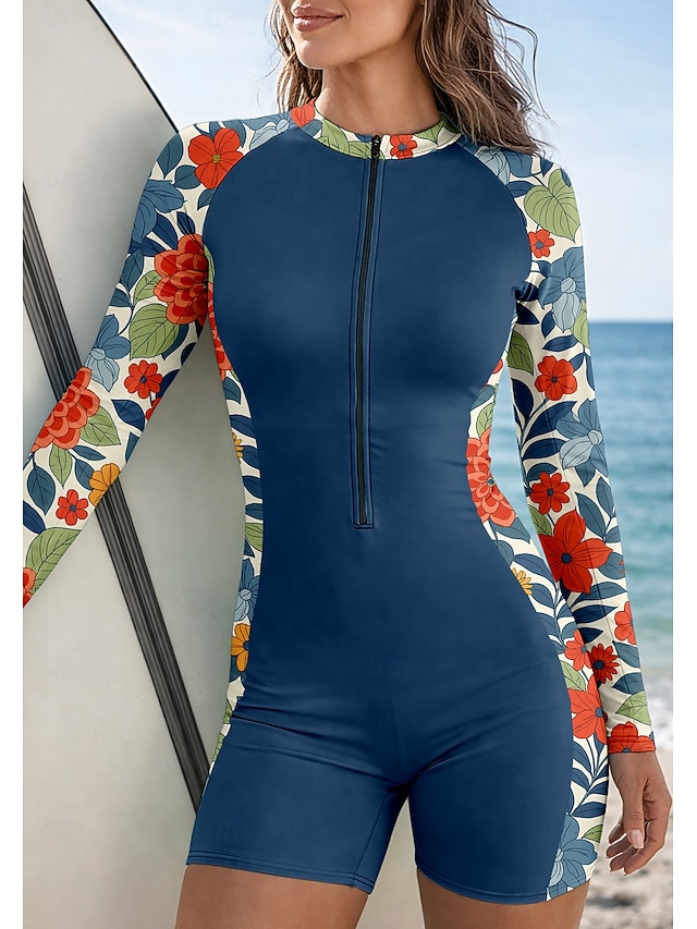 Dámské Ochrana proti vyrážce Plavky Atletické plavky Květinový Zapni Vyjímatelné vycpávky Přední zip UV ochrana proti slunci UPF50+ Ultra lehký (UL) Dlouhý rukáv Plavky Ochrana proti vyrážce#13405718