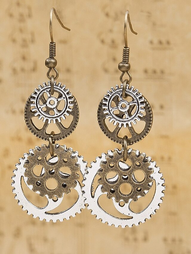 Ženské Mardi Gras Antiquované Slitinové Ozubené Kolo a Klíč Visací Náušnice - Vícebarevný industriální doplněk pro karneval a tematické párty#13560914