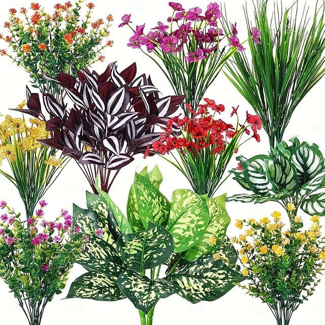 24 ks umělých rostlin zimozeleň, stonky, UV odolné umělé rostliny do interiéru &venkovní, závěsná zeleň do zahrady, na verandu, do okenního truhlíku, na dům, na svatbu &dekorace farmářského domu#13897935