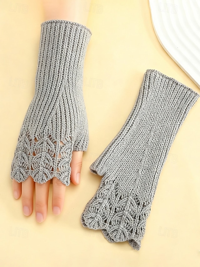 Dámské pletené vánoční rukavice – měkký přízový materiál s krajkovým vzorem, dostupné v několika barvách, ideální jako zimní a sváteční dárek#14003963