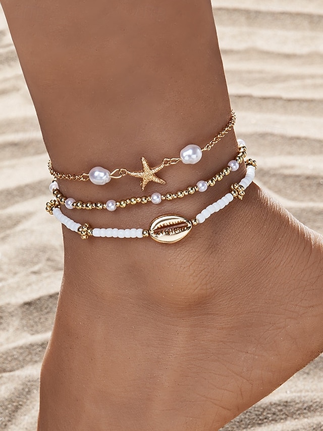Dámské vícebarevné bohémské náramky na kotník z pryskyřice a slitiny, perleťový a mušlový design, ideální na dovolenou, běžné nošení.#14310355