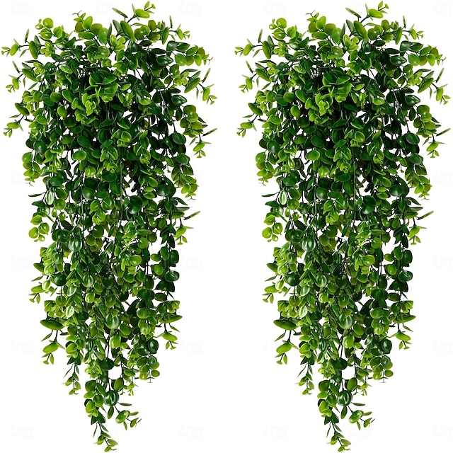 Sada 4 umělých závěsných rostlin, umělé závěsné rostliny, umělé závěsné rostliny eukalyptu, UV odolné plastové rostliny pro vnitřní a venkovní použití, stěnu, svatbu, terasu, verandu, dekoraci#14316404