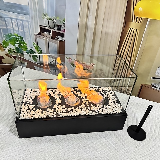 skleněný velký stolní krb přenosný ohniště s miskou na oheň, čisté hoření bioetanolu, bezodvětrávací krb pro vnitřní i venkovní terase, párty#14594630