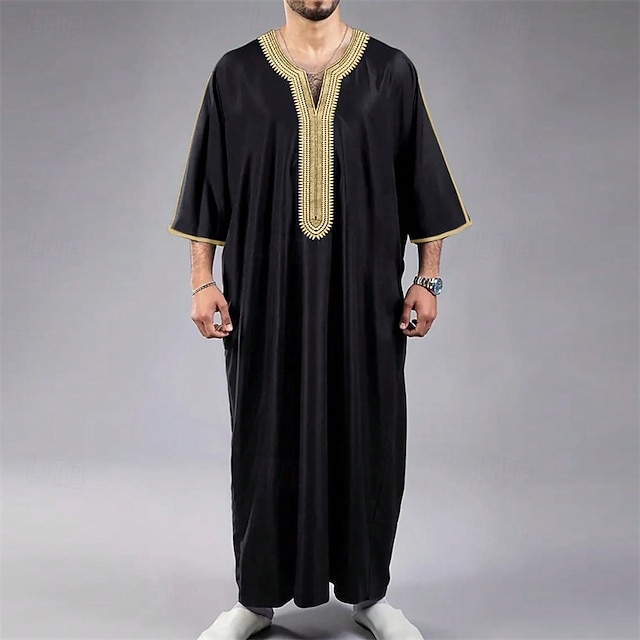 Pánské Větší velikosti Pyžama Župany Noční košile Noční prádlo 1ks S proužky muslimský Denní Směs bavlny Pohodlné Prodyšné Kapsy Jaro & podzim Vodní modrá Foto Barva