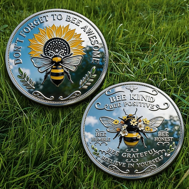 Pamětní mince s motivem včelí pozitivity, rytá kovová sběratelská mince s motivem včely a pozitivními citáty, dekorativní inspirativní dárek na domácí kancelářský stůl.#14714173