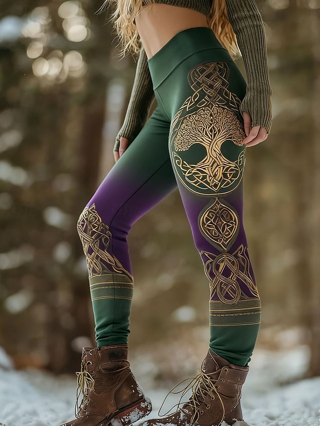 Legíny pro ženy Viking Boho dovolená vintage etnický styl plná délka vysoký pas grafický strom gradient rychleschnoucí prodyšné měkké pružné formální venkovní dovolená zelené jaro podzim zima slim fit#15174071