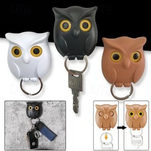 Sada 3 háčků na klíče se sovou, magnetické nástěnné háčky se sovou, magnetický háček na ledničku, organizér na klíče, nástěnný magnetický samolepicí háček bez vrtání pro snadné skladování#15222545