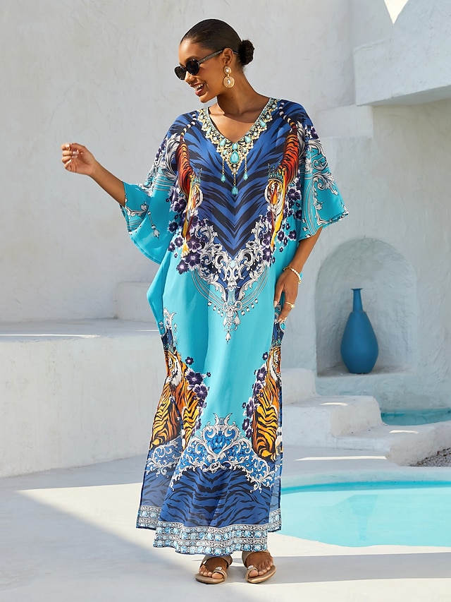 Typ šatů:Kaftanové šaty,Šaty s potiskem,Pohlaví:Dámské,Látka:Šifón,Design:Dlouhé,Potisk,Příležitost:Denní nošení,Ležérní,Jdeme ven,Plážové,Styl:Plážový styl,Cikánské,Vlastnosti tkaniny:Šifon WhisperFlow,Trendy:Volné,Tisk,Výstřih:Do V,Detaily:Odepínací podšívka,2 kusy,Délka rukávů:Polodlouhé rukávy,Krátký rukáv,Poloviční rukáv,Typ rukávů:Maďarský rukáv,Elasticita:Neelastické,Údržba:Prát v ruce,Prát v pračce,Délka šatů:Na zem,Vzor:Motýl,Sezóny:Léto,Jaro léto,Uvolněnost:Lose Fit,