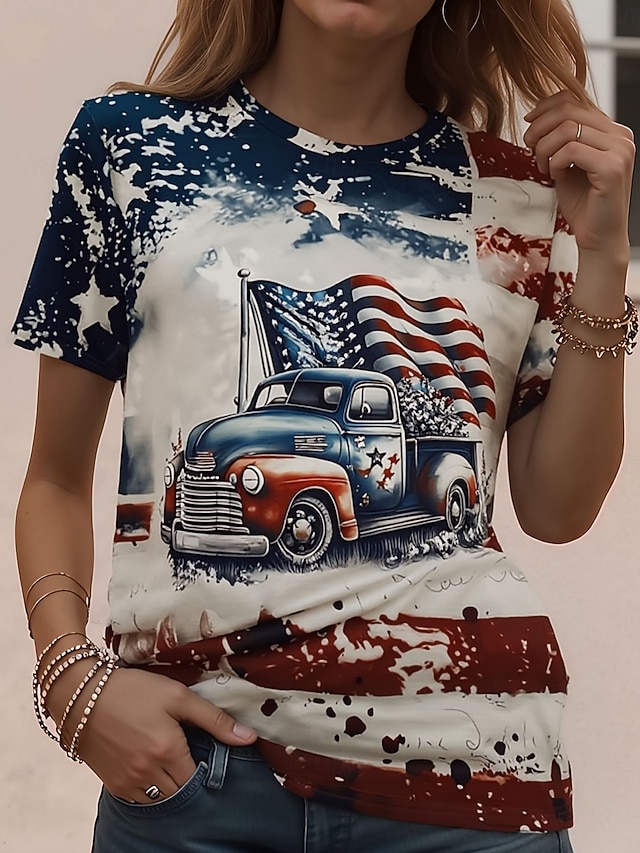 Tričko s krátkým rukávem pro ženy k americkému Dni nezávislosti grafika písmeno vintage stylové klasické krátký rukáv kulatý límec každodenní víkendový potisk modrá bílá-modrá žlutá #16175972