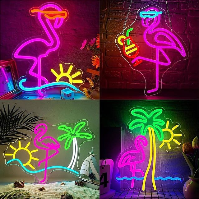 plameňák, koktejl, palma &Nástěnná svítidla s neonovým nápisem s vlnami, napájení přes USB, stmívatelné LED světlo s barevnými možnostmi pro interiér, ložnici, obývací pokoj, hernu, bar, párty,#16532958