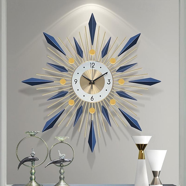 [Název Produktu]: Velké nástěnné hodiny - Středně stoletý moderní tichý dekorativní budík pro domov a kancelář [Materiál a Konstrukce]: Vyrobené z vysoce kvalitního kovu, tyto velké nástěnné hodiny se pyšní sofistikovaným evropským a moderním designem. Jejich kovová konstrukce zajišťuje trvanlivost a elegantní vzhled, což dokonale ladí se současným zařízením. [Designové Zajímavosti]: Inspirované motivem slunečního záření, tyto hodiny kombinují broušený kovový kulatý čelní panel ve svém jádru. Okolní minimalistické černé číslice zajišťují jasnou čitelnost času, zatímco prodloužené kovové tyče s modrými a zlatými geometrickými tvary vytvářejí výrazný vizuální dojem. Prodloužené modré tvary umocňují design slunečního záření, doplněný zlatými akcenty, které přidávají luxusní nádech. [Styl a Estetika]: Tyto hodiny slouží jako stylový výrazný prvek vhodný do jakéhokoliv moderního obývacího pokoje, jídelny, ložnice nebo kanceláře. Jejich umělecký nádech poskytuje jedinečnou a poutavou funkci, která zhoršuje estetiku vašeho prostoru. [Univerzální Použití]: Ideální pro různé prostředí, a to jak pro přidání šarmu do domácího prostředí, tak pro sofistikovanost v kanceláři. Tyto ohromující dekorativní hodiny slouží jak funkčním, tak ornamentálním účelům a vyvolávají komplimenty od hostů a kolegů. [Velikost a Rozměry]: O rozměrech 32 palců na 32 palců (80 cm x 80 cm) jsou tyto hodiny dokonale veliké, aby sloužily jako centrální bod v jakékoliv místnosti, poskytující rovnováhu praktičnosti a umění v jakémkoliv prostředí.