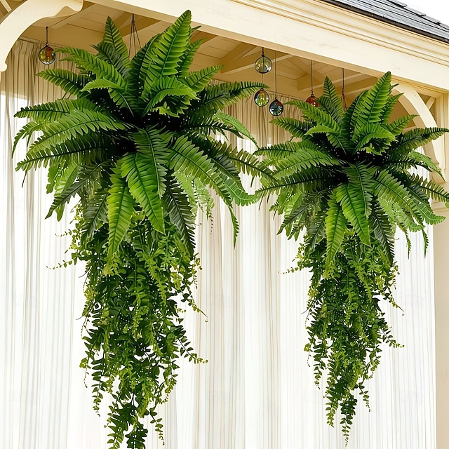 Bostonská kapradina, závěsná kombinace rostlin, umělé rostliny vyrobené z vysoce kvalitních materiálů odolných vůči UV záření, vhodné pro moderní svatební zahradní dekoraci#17167040