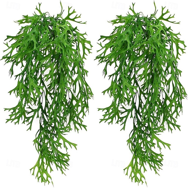 Sada 4 umělých závěsných rostlin z kapradiny staghorn, umělá kapradina, zeleň tropické džungle, listy révy vinné, na dekoraci na zeď, na svatbu, do zahrady, do domu, na venkovní dekoraci#17933788