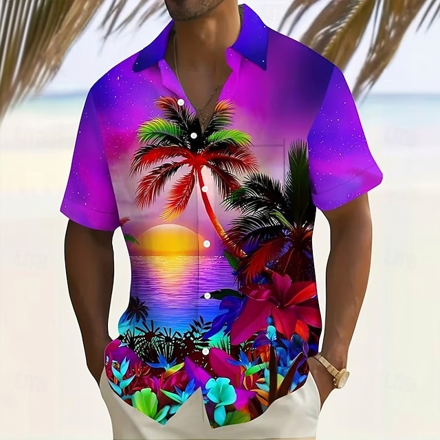 Pánské Kokosový strom Příroda a krajina Tropické rostliny Havajská košile Košile na knoflíky Aloha košile Krátký rukáv Havajské Dovolená Léto Jaro Přehnutý 3D tisk košile s límečkem Jedna přední kapsa #18465544
