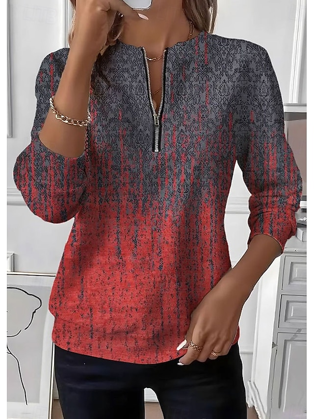 Dámské Svetrová mikina Mikiny na zip Zip Tisk Grafika Kašmírový vzor Módní Na běžné nošení Dlouhý rukáv Tričkový Běžné topy ulice Na den Rubínově červená Fialová Trávová zelená Podzim Zima #18570636