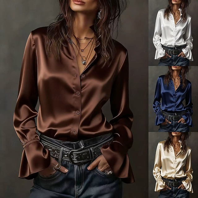 Dámské Halenka Knoflíky Pevná barva Elegantní stylové Základní Dlouhý rukáv Košilový límec Běžné topy Denní Práce Bílá Šampaňská Námořnická modř Hnědá Jaro Podzim Zima #18793276
